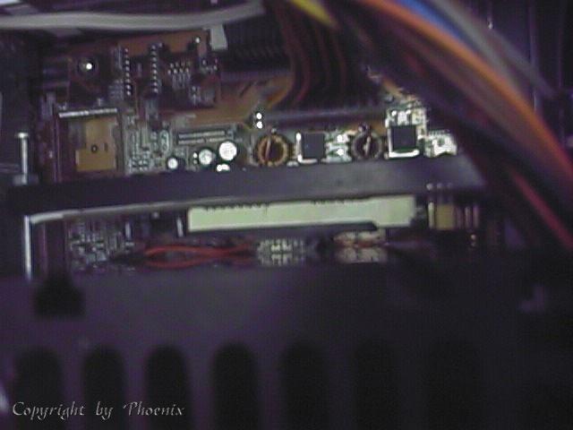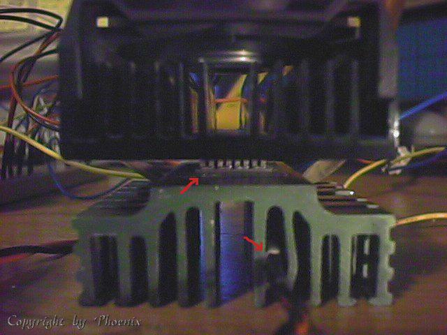 The prototype board was ready for testing, after a few modifications to the original schematic were done in order to control directly the maximum current for the peltier (via the transistor's input pull up resistor). The new prototype was ready and the peltier with the thermo-diode were placed on the head of my CPU (p2 celly). I used an adhesive thermal pad instead of normal paste, because the peltier and the diode had to be steady in their places. Also it was a good time to test the thermal ability of the pads. I assembled the "CPU card-peltier-heatsink" and put it back in my box.